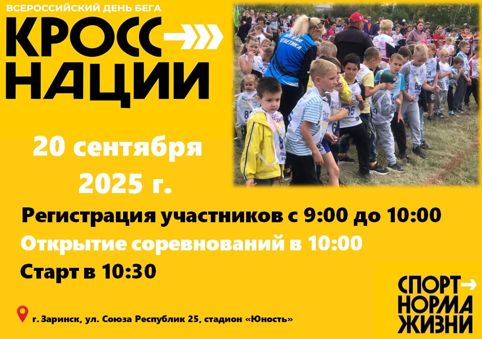 Всероссийский день бега "Кросс нации-2025" пройдет в Заринске!
